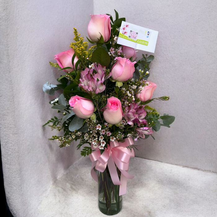 Pink Roses Arrangement in a clear glass vase prefect for home, or office, to express your love.