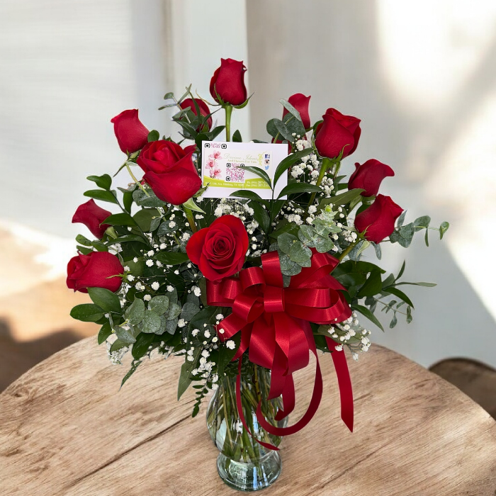 1 Dozen Red Roses Arrangement in a Clear Glass Vase.(Vase may vary due to store availability.)
