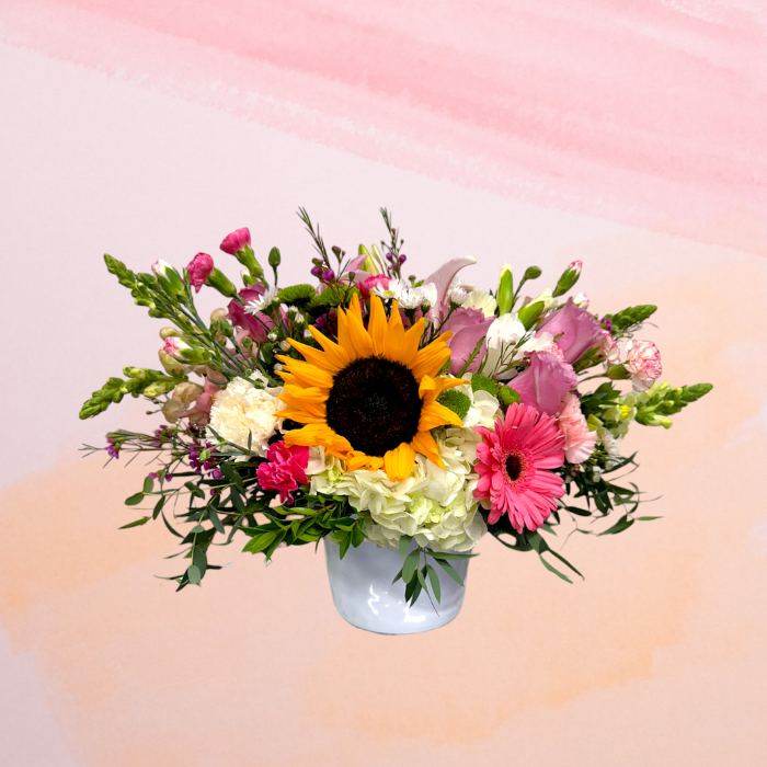 Mixed pink, white, yellow and lavender arrangement, (vase may vary) whether you're looking to give thanks, send love, or just let someone know you care.