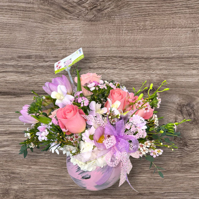 Perfectly Pink tones arrangement in glass vase prefect for home, or office, to express your love.
