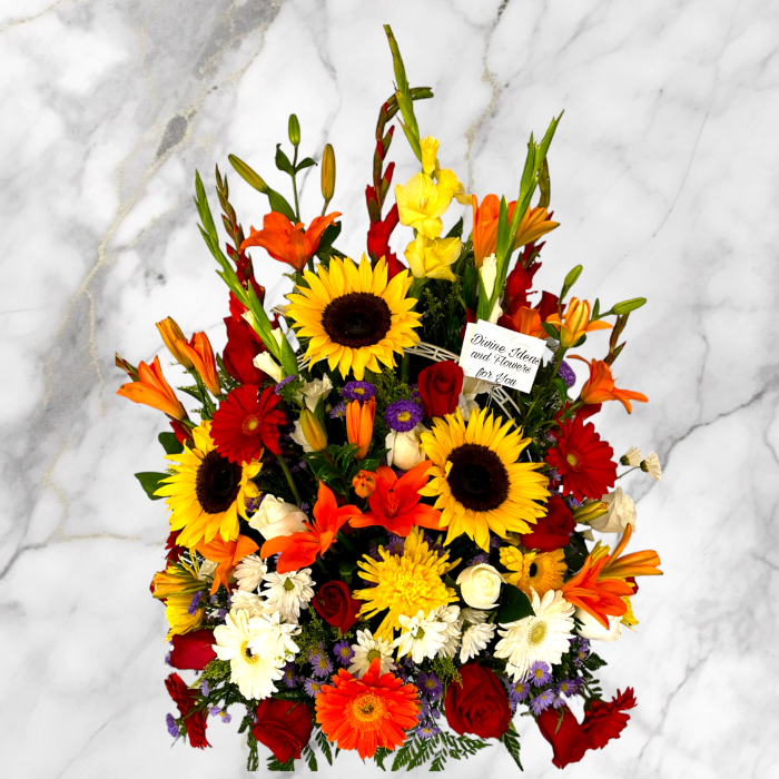 Mixed Basket arrangement prefect for service, home, office or church to express your condolences.