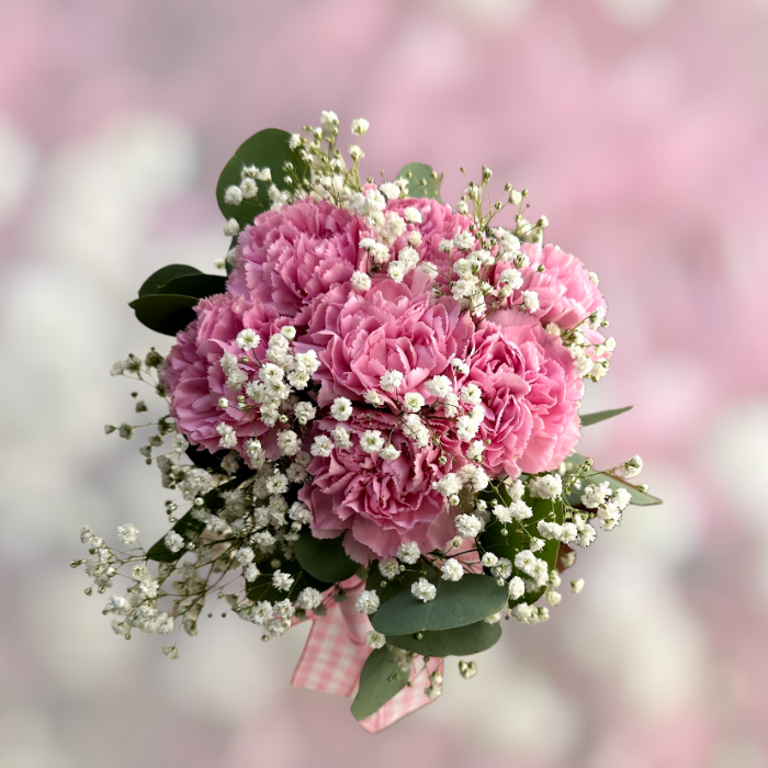 Pink Carnations Bouquet With Baby's-Breath and Greenery.
