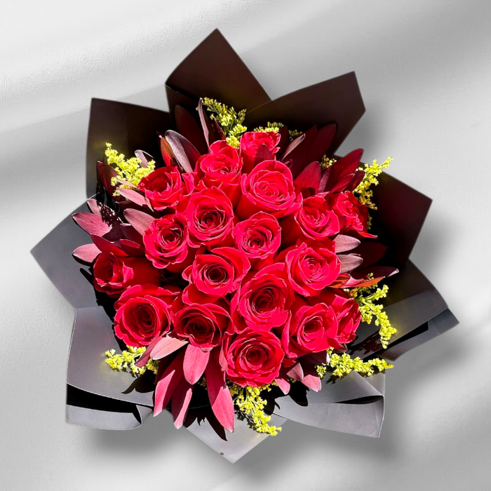 Red Roses with Greenery and Filler Bouquet perfectly wrapped with Korean paper for any occasion. (Color of paper may vary)