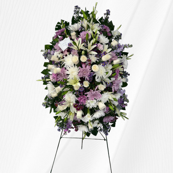 Lavender and White Sympathy Standing Spray prefect for service, to express your condolences.