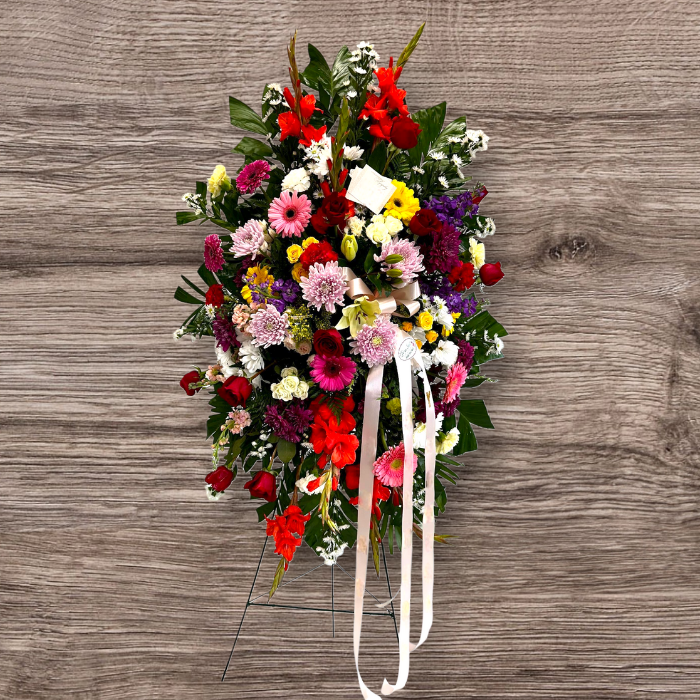Mixed Female Colors Sympathy Standing Spray for Woman prefect for service, to express your condolences.