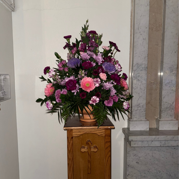 All Shades of Pink and Purple Church Altar Flower Arrangements